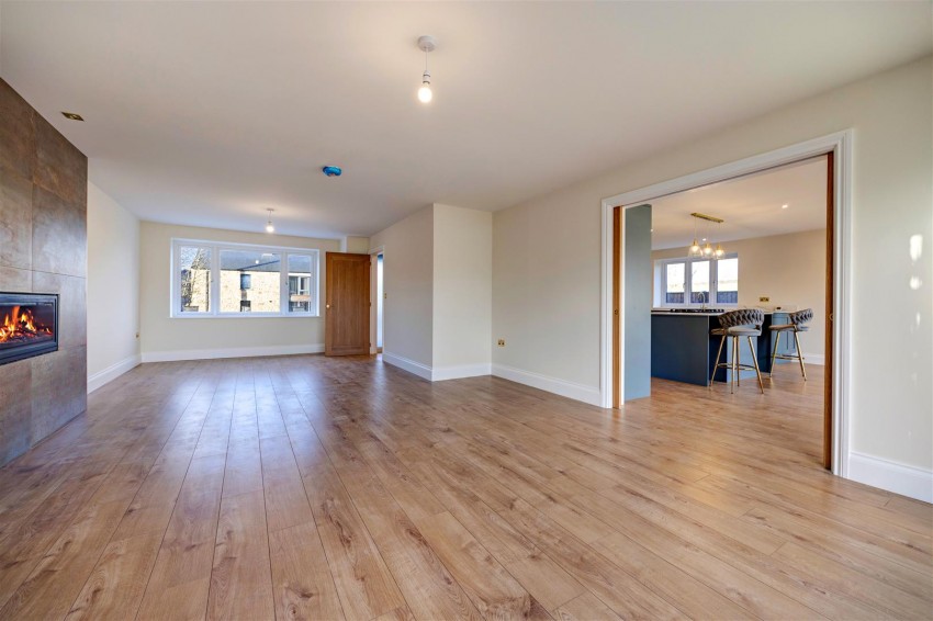Spacious full depth sitting room featuring, Oak flooring with under floor heating, feature fireplace with integrated remote controlled gas fire, sliding pocket doors to dining area, UPVC double glazed window to front, UPVC double glazed sliding door and windows to rear leading to rear patio and garden.